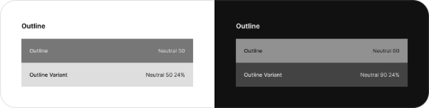 Для Outline Variant применяются полупрозрачные цвета, что позволяет разместить его поверх различных фонов с разным уровнем контрастности. Таким образом, контур остаётся видимым без усиления визуального шума.