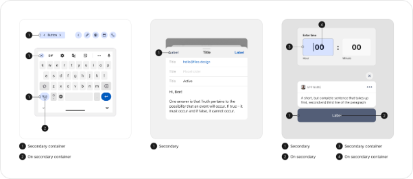 - On Secondary Container — текст и иконки на фоне Secondary Container.